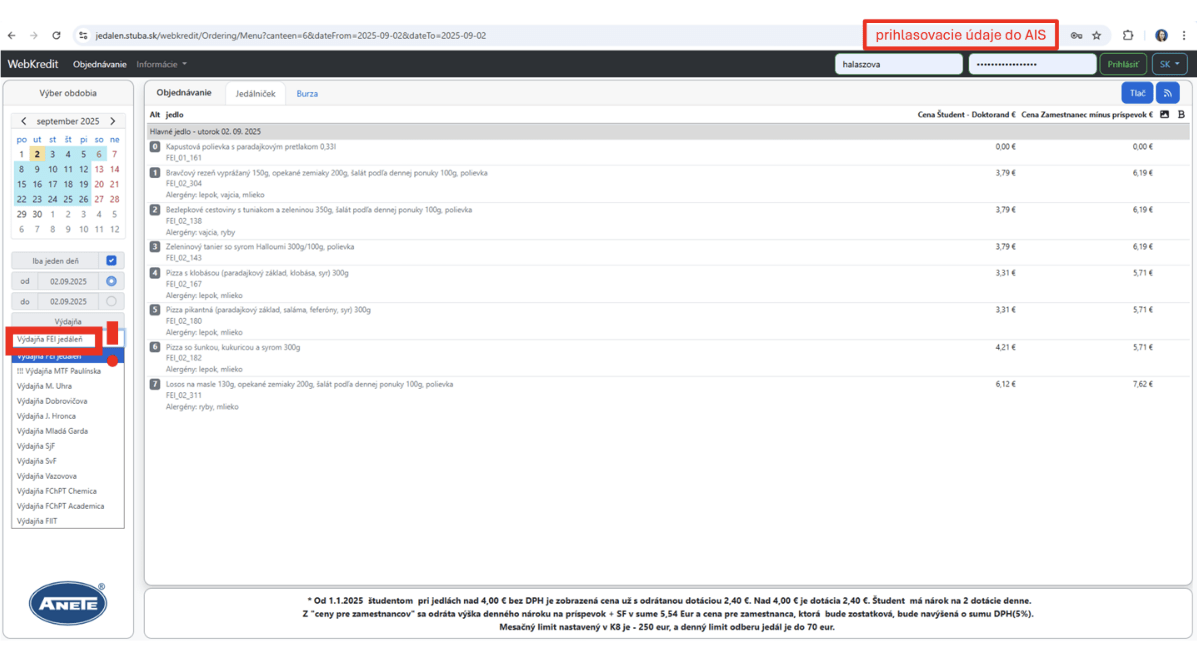 Objednávanie jedál je do 6:00 hod. aktuálneho pracovného dňa. Jedáleň nevydáva jedlá bez objednania.